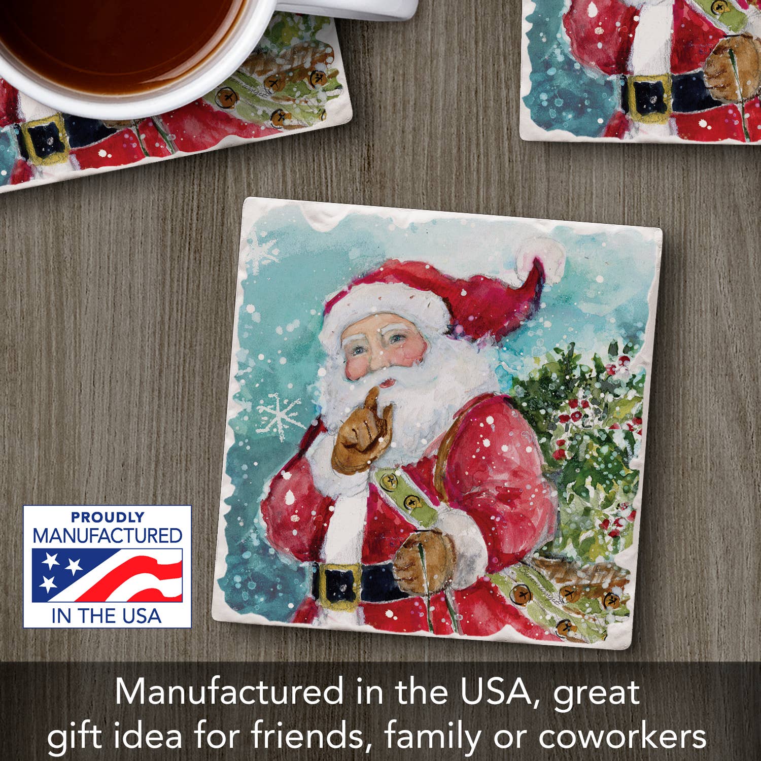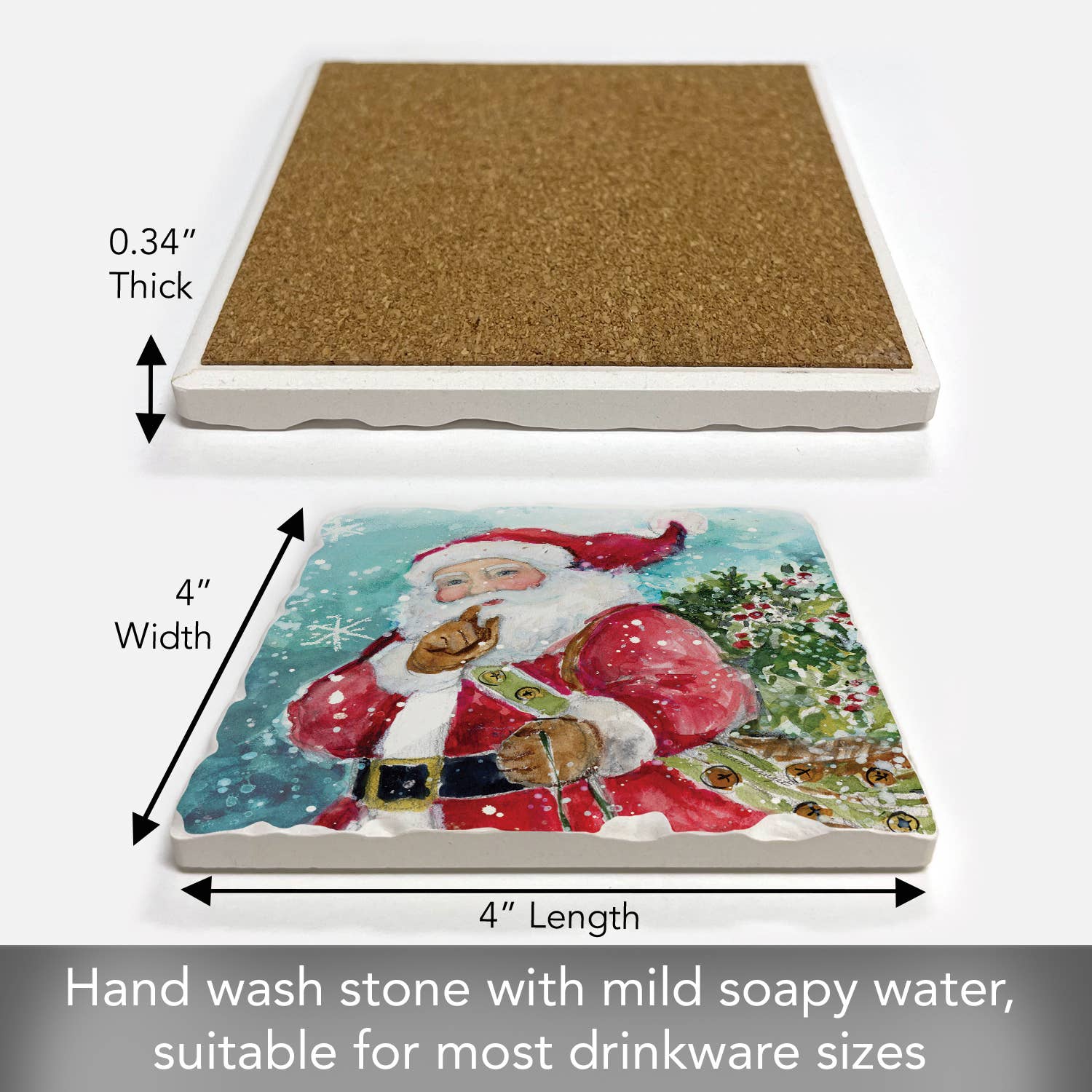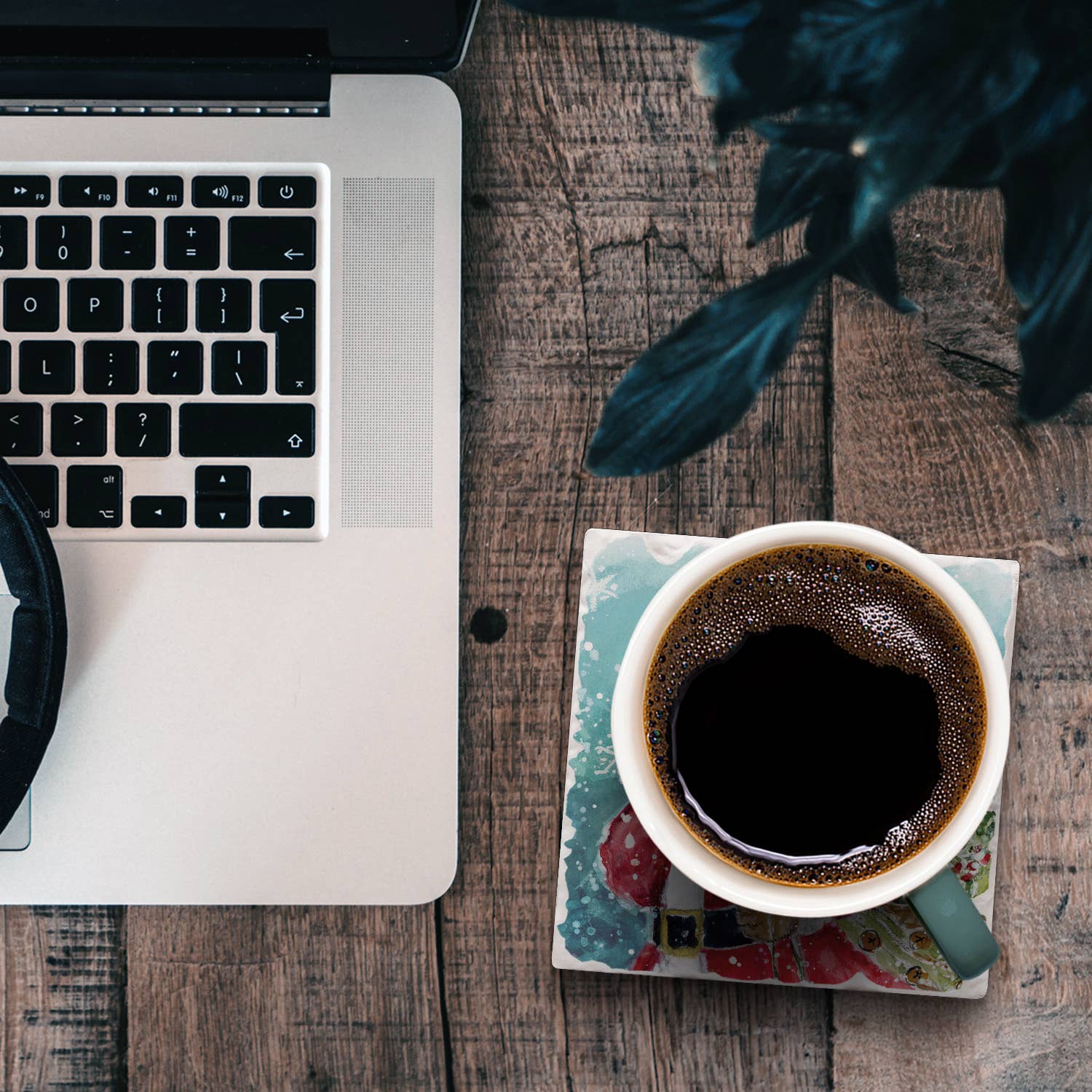 Manufactured in the USA of absorbent stone to absorb excess condensation from beverages. Cork backing protects your surfaces from scratches and stains. Features Tumbled Tile edge giving it that classic yet rustic appearance. Coaster measures 4 inch by 4 inch allowing for a larger glass or cup to be placed on them. This Single Coaster fits perfectly in a plant or basket to be given to friends and family. Give as a hostess gift or keep for yourself.