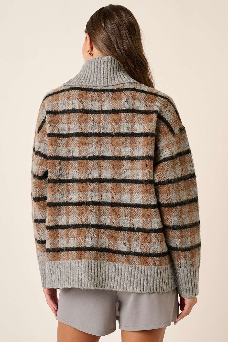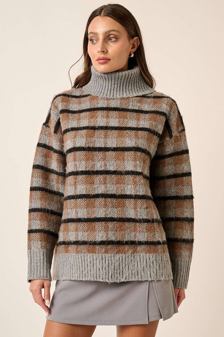 Elevate your seasonal wardrobe with this sophisticated turtle neck plaid sweater, designed for timeless versatility. The classic plaid pattern adds visual interest while the relaxed drop shoulder silhouette delivers contemporary comfort and ease of movement. Crafted for layering or standalone wear, this piece transitions seamlessly from casual weekends to polished office settings. The high neckline provides warmth and a refined finish, making it an essential addition to any well-curated closet.
