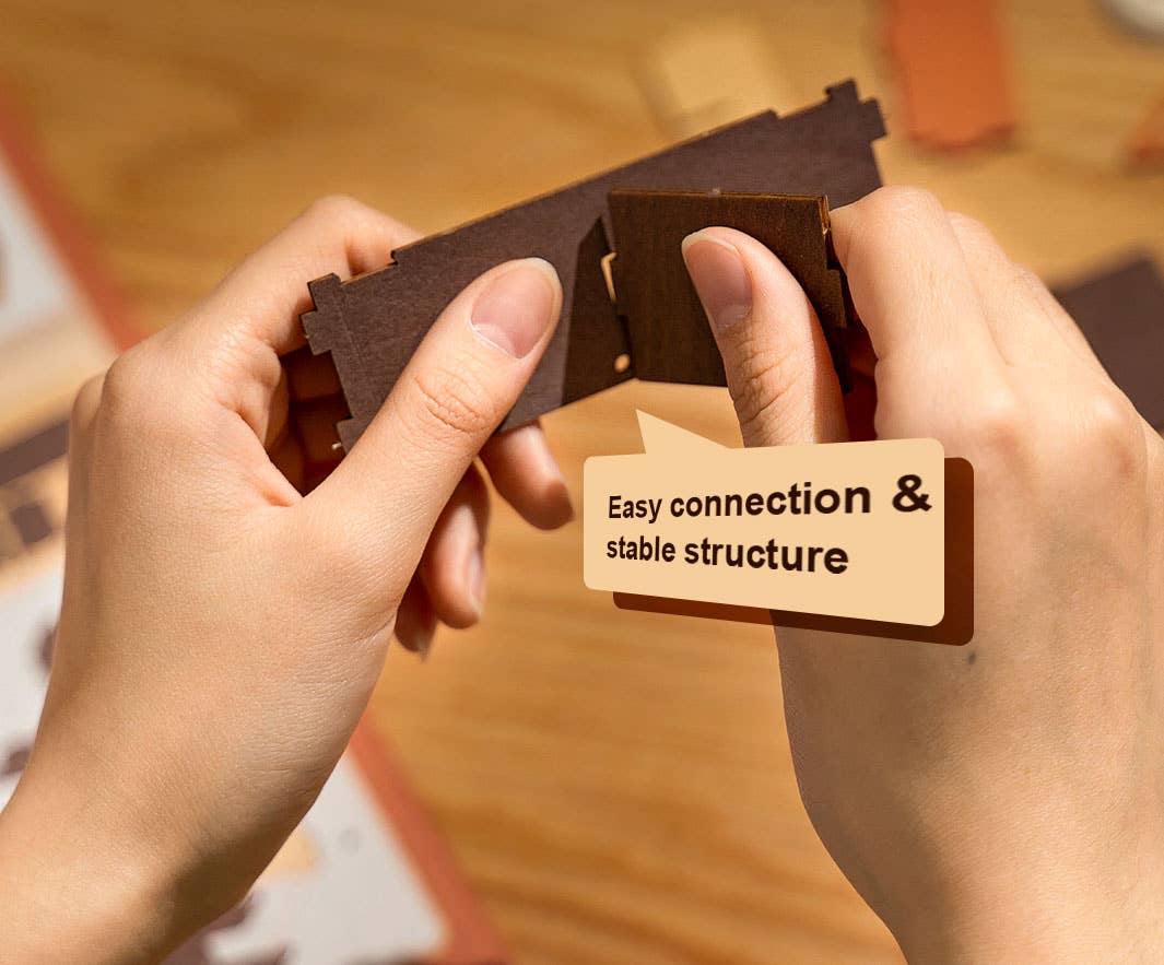 DIY Miniature House Kit: Becka's Baking House with LED Lights by Hands Craft. Perfect for birthdays, a crafting hobby project, or home or office decor. Includes glue, tweezer, wiring, LED lights, battery box, and all pieces required to build. *Requires 2 AAA batteries (not included) *Assembled Size: 8.5 x 5.9 x 6.2 in *Pieces: 141pcs *Recommended Age: 14 +