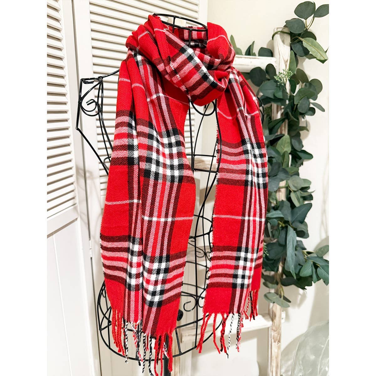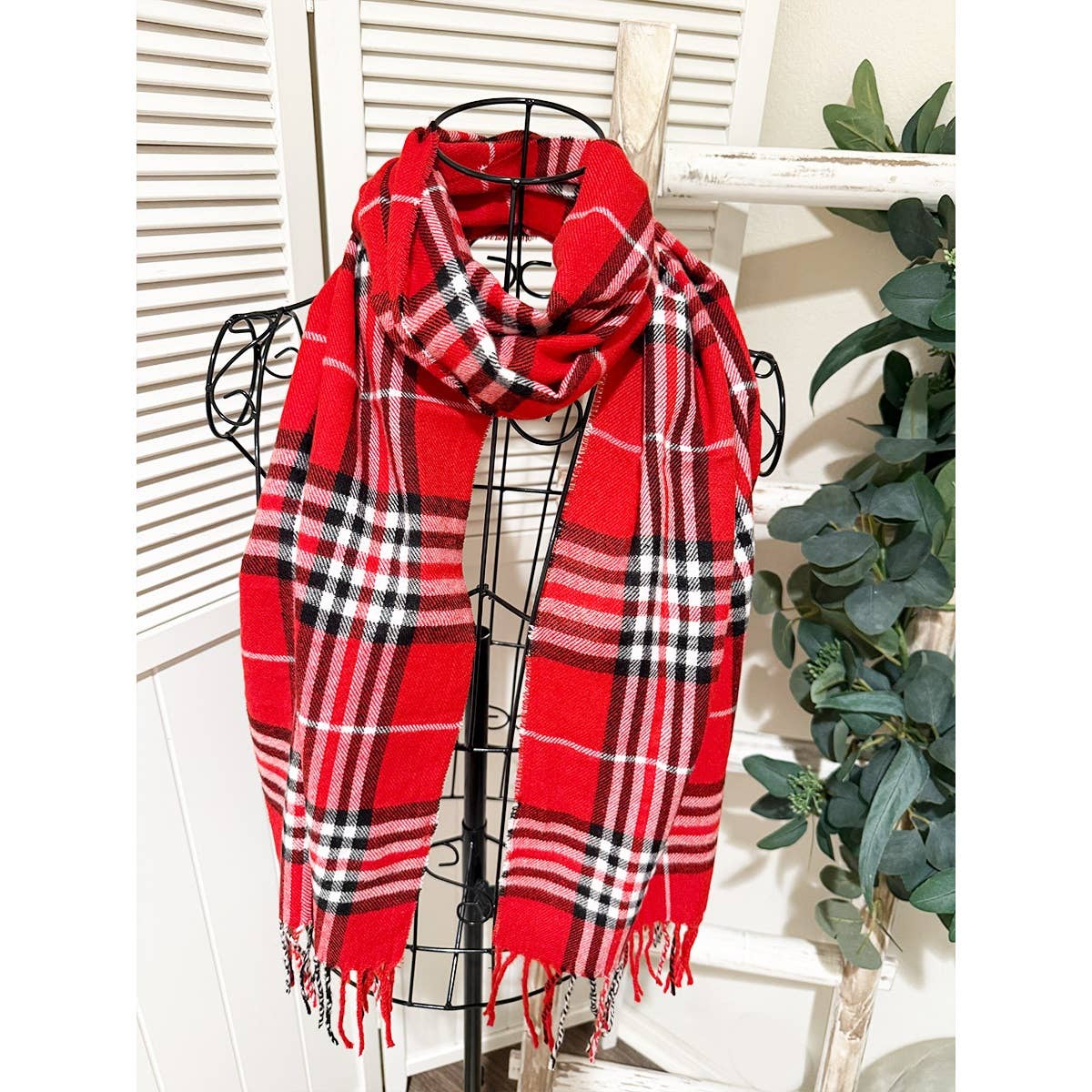 Plaid Print Fringe Scarves.